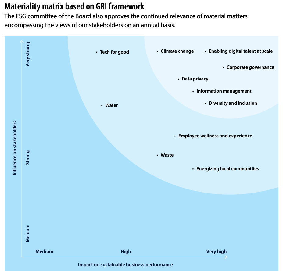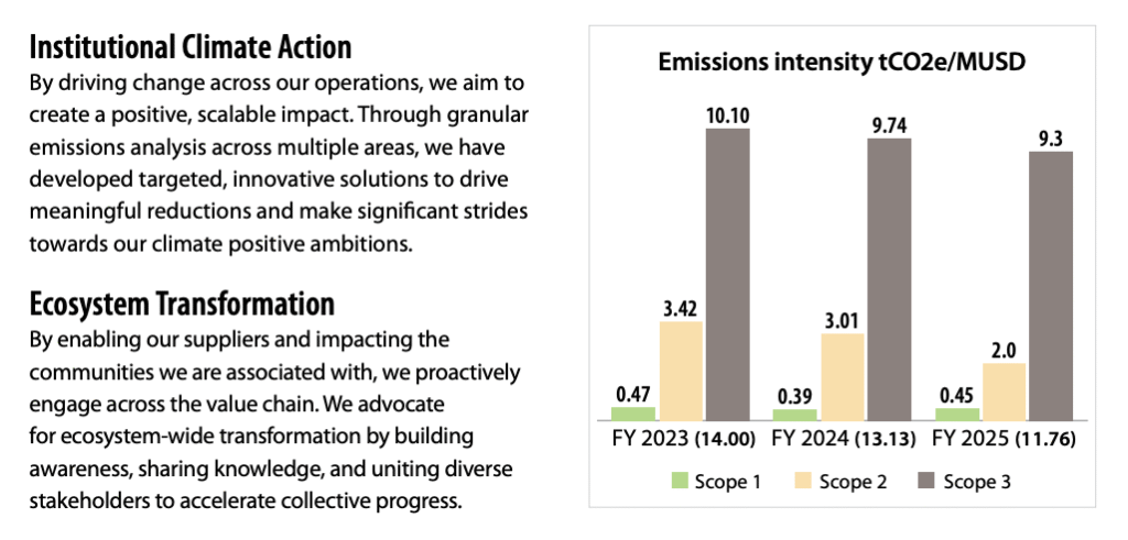 📌 Example: Infosys became carbon-neutral in 2020, ahead of schedule, by tracking and reporting emissions across operations and supply chain. However, Climate change target remains their most priotised Double Materiality Assessment (DMA) focus.