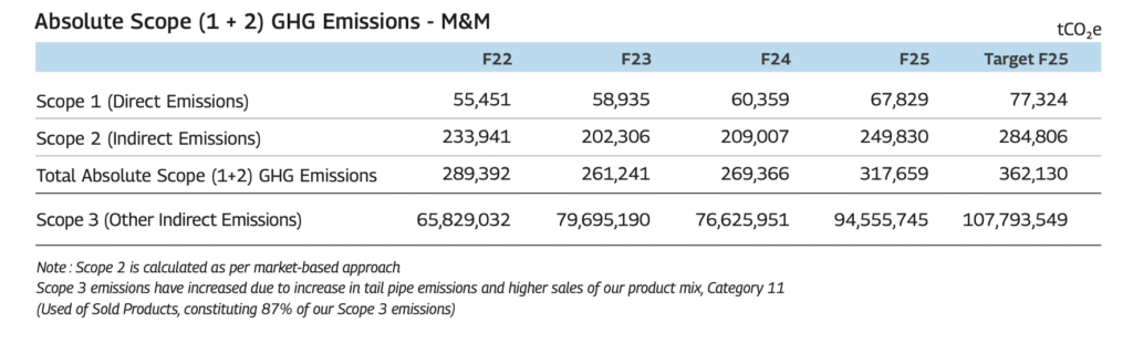 📌 Example: Mahindra & Mahindra tracks Scope 1 & 2 for manufacturing plants, and reports Scope 3 categories such as logistics and raw materials.