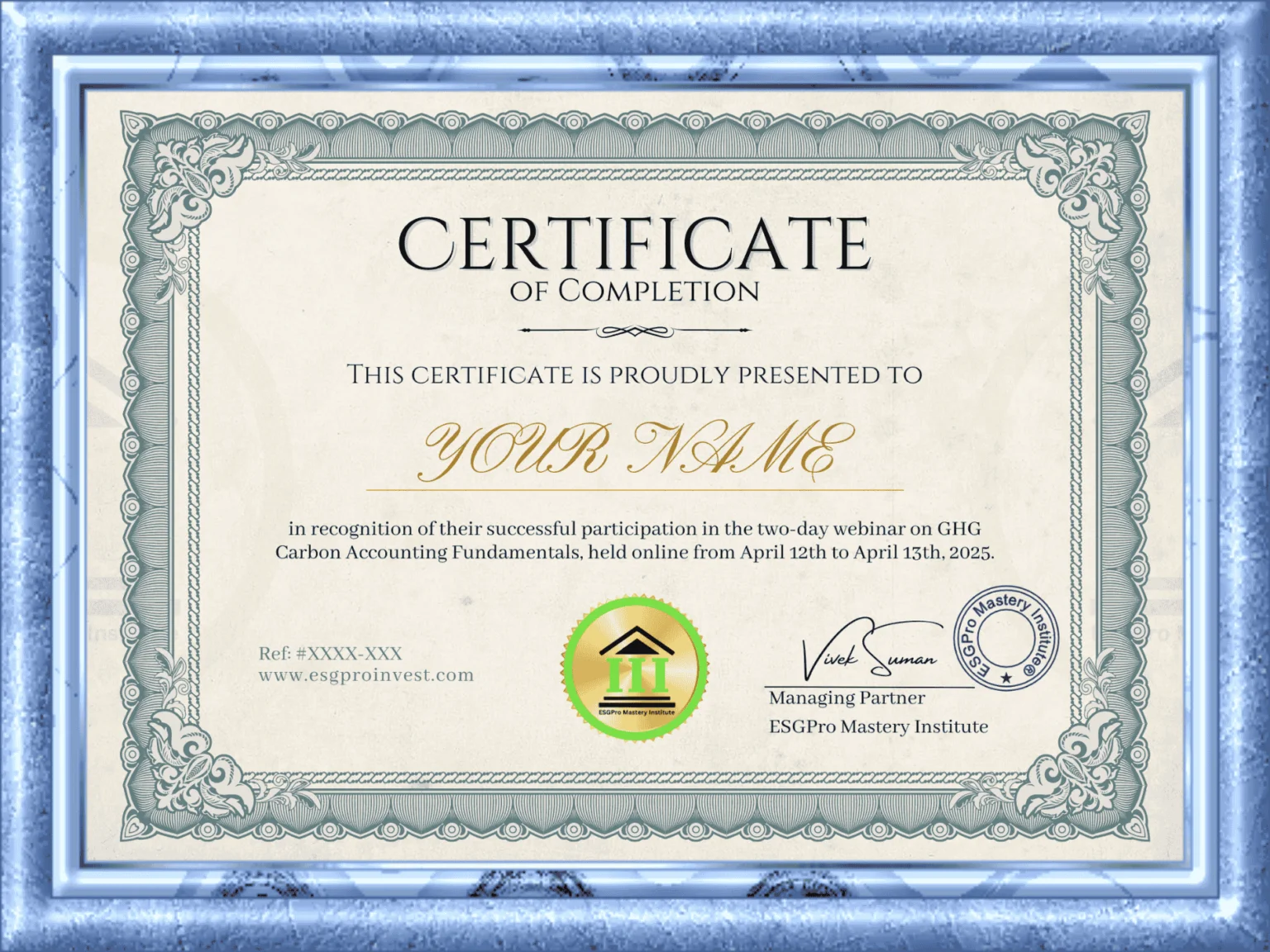Disclaimer : All content provided on this website and during the 2-Day GHG Carbon Accounting Bootcamp is for educational purposes only. We do not guarantee job placements, career outcomes, or financial results. Any references to success, guaranteed results, or bonuses are promotional and subject to specific terms and conditions. Actual results vary based on individual effort and market factors.
